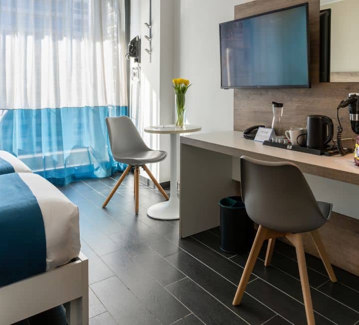 • Designer Room with one king or two single beds and sofa bed.